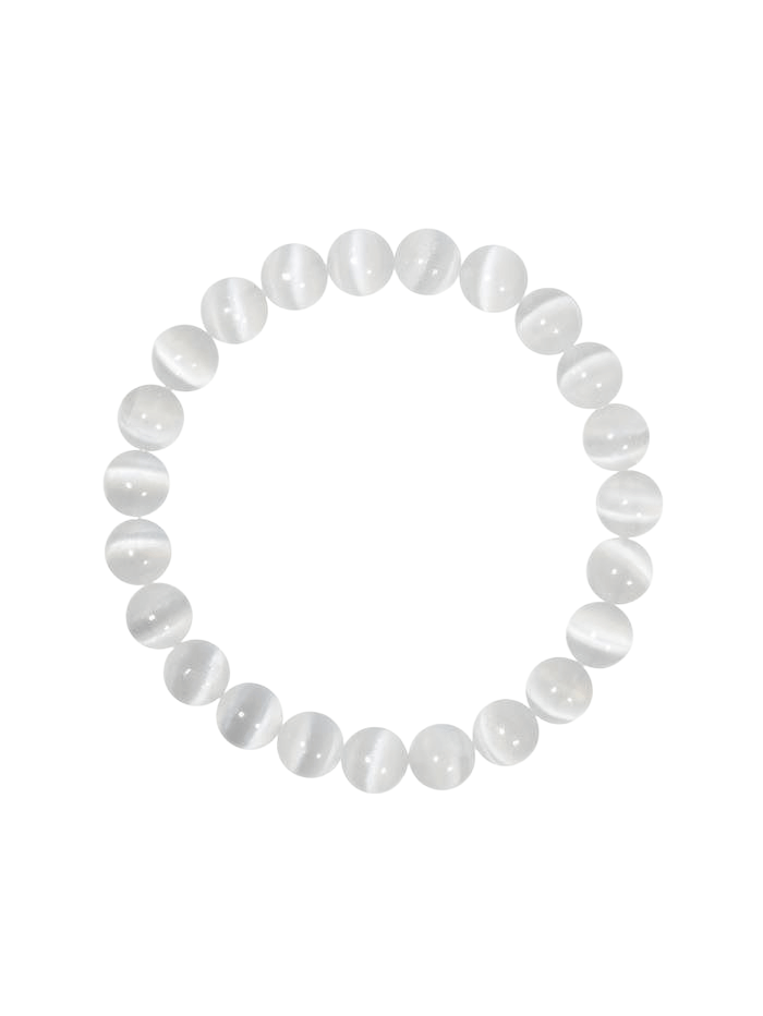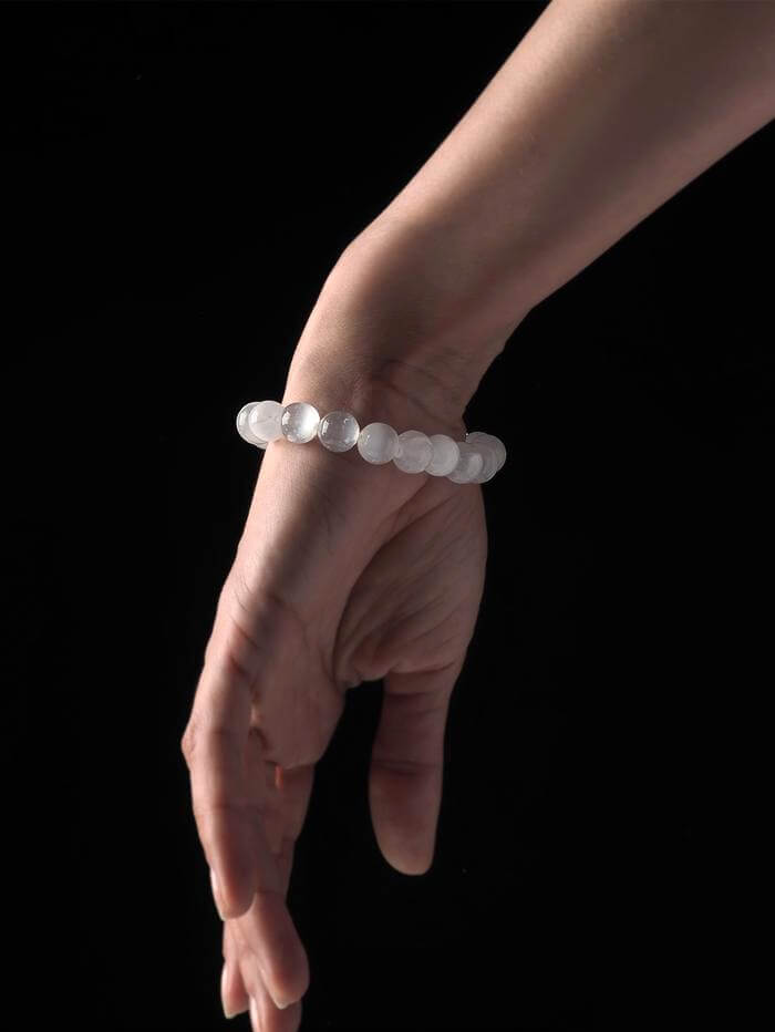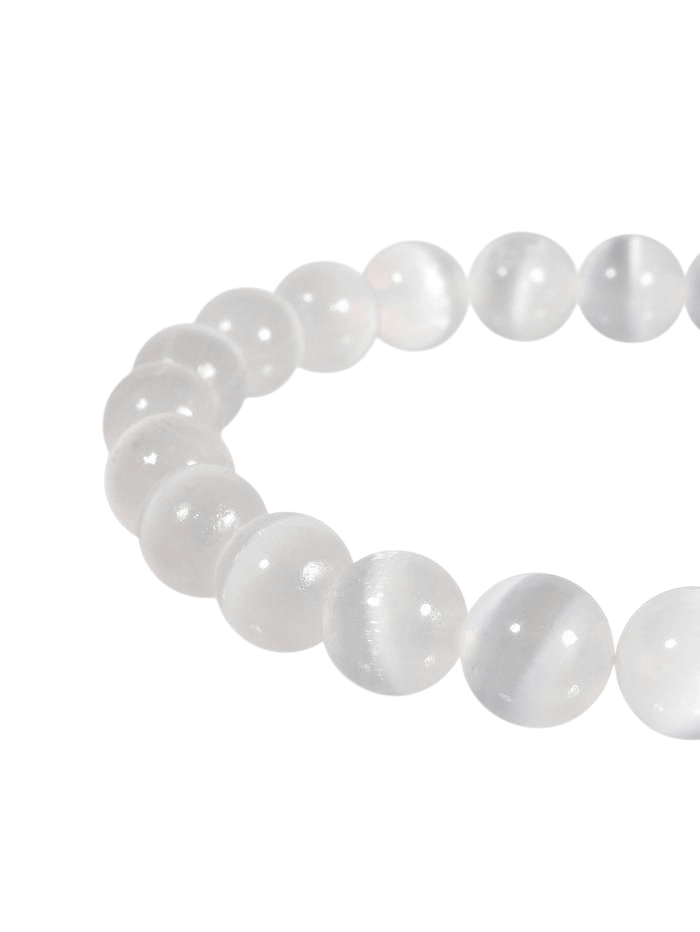 Ніжний браслет, створений із натурального селеніту – каменю світла, чистоти та спокою. Його напівпрозорий білий відтінок із легким шовковистим полиском нагадує місячне сяйво, даруючи відчуття гармонії та внутрішнього балансу.