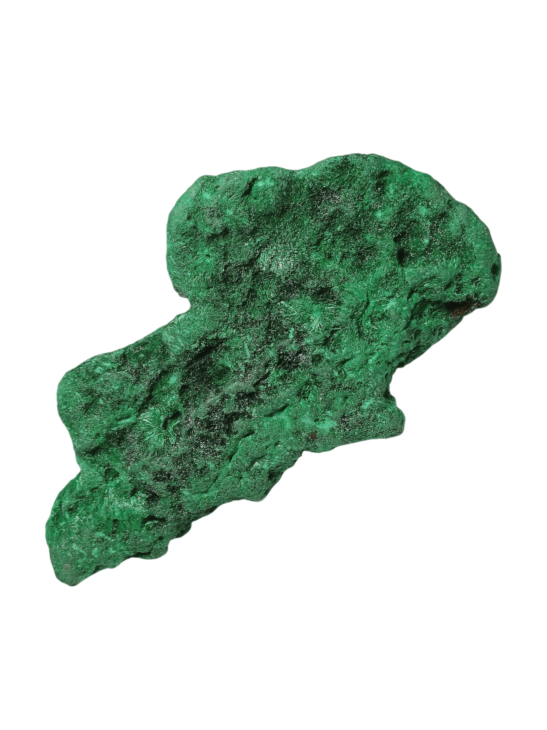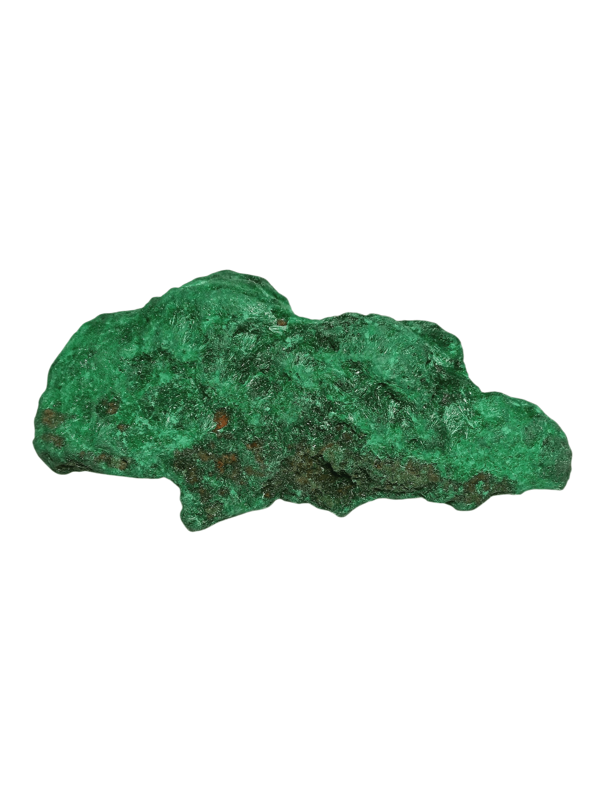 Колекційний зразок натурального необробленого малахіту з яскравим зеленим кольором, природними включеннями та легким мерехтінням.