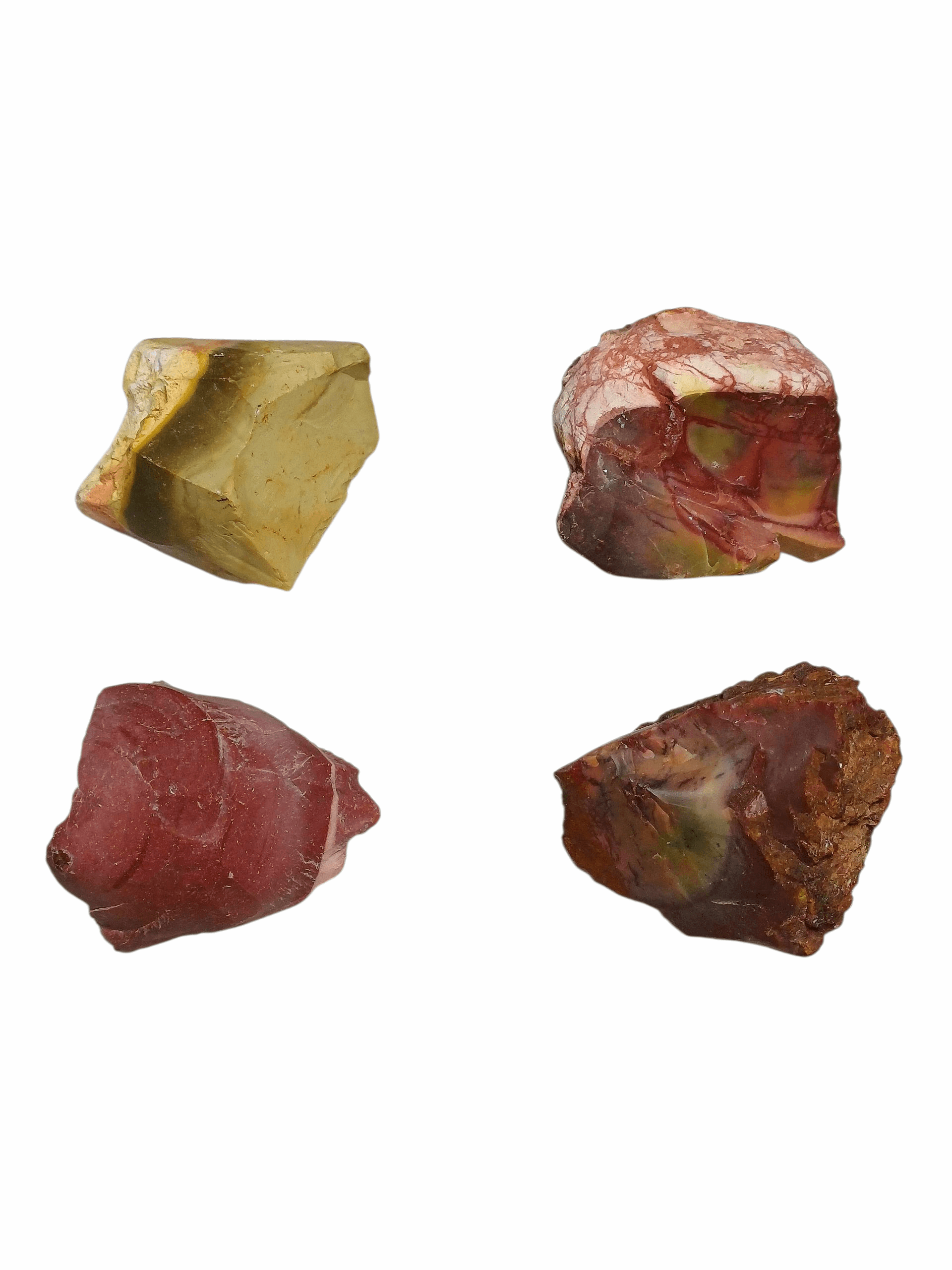 Мукаїт – це рідкісна австралійська різновидність яшми, яка вражає своєю природною палітрою – від кремово-білих і гірчичних до глибоких червоних, винних та фіолетових відтінків. Кожен необроблений камінь унікальний, з власним візерунком і енергією Землі.