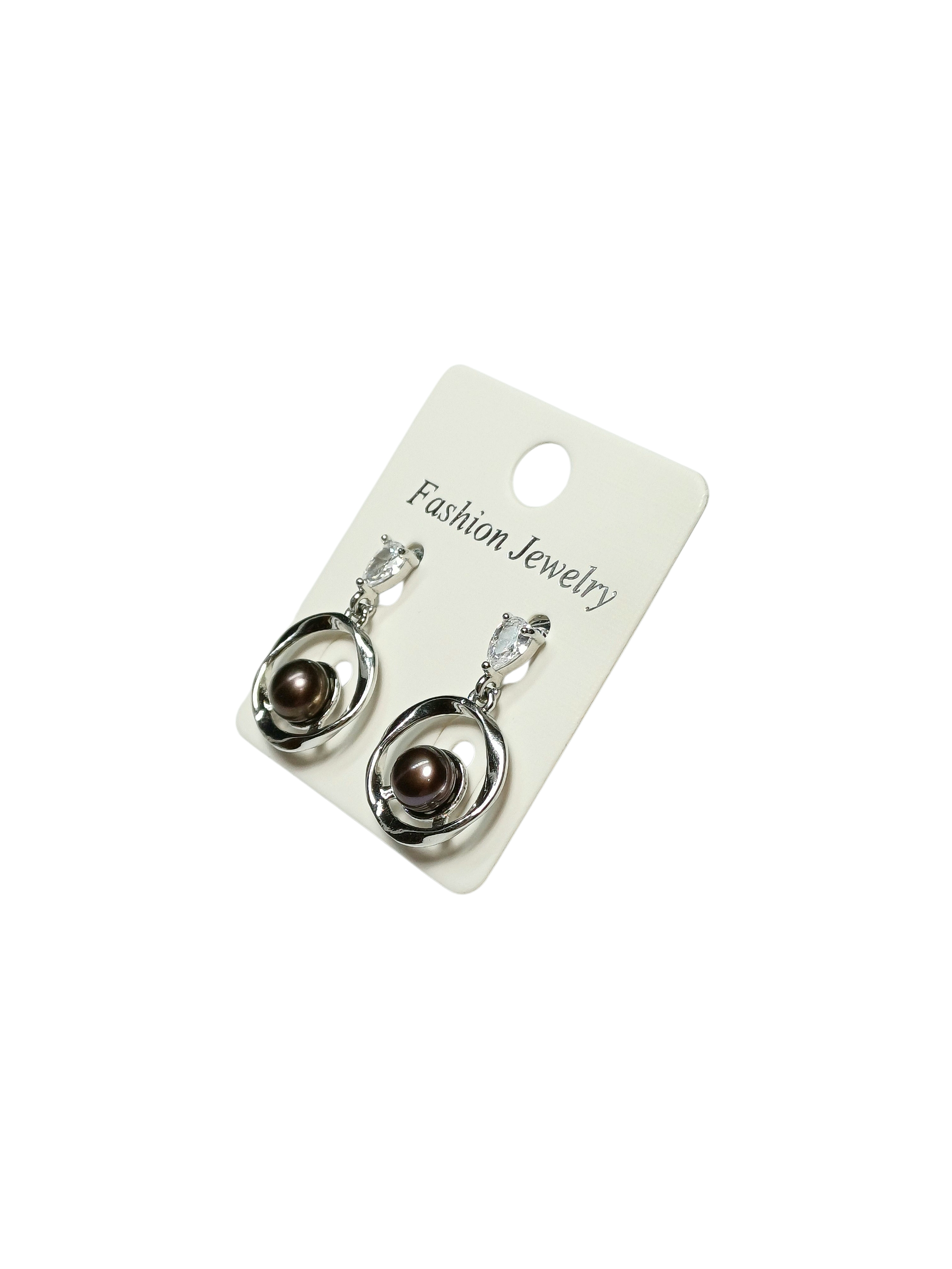 Ошатні сережки-гвіздки з фіанітами та натуральними чорними перлинами.